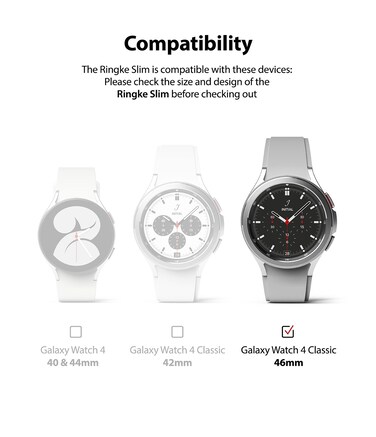 Slim Case for Samsung Galaxy Watch 4 Classic Cover your Samsung Galaxy Watch4 Classic with an PC case and protect it from possible everyday damage. This elegant cover will shield the screen and the sides of your Samsung Galaxy Watch4 Classic against scratches, impacts. What is also noteworthy about this case is that precise cut-outs provide the unhindered handling of your Samsung Galaxy Watch4 Classic. Features: - Strong and excellent protective PC (Polycarbonate) case for Samsung Galaxy Watch4 Classic - The case protects well the sides and the screen of your Samsung Galaxy Watch4 Classic - Precise cut-outs on the case ensure unhindered handling - This cover can easily be assembled or disassembled - Made for effortless style and comfort for everyday wear - Durable PC protects against scratches, impacts, and dust - Quick and secure snap-on installation. No tools or adhesives needed! - It ONLY covers the frame edge. Does not cover the screen Compatibility: Samsung Galaxy Watch 4 Classic