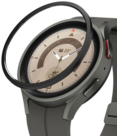 - Compatible with Samsung Galaxy Watch 5 Pro 45mm Designed to be the ideal size for the watch bezel High-quality stainless steel offers protection for the existing bezel Ringke Bezel Styling supports wireless charging. Smart Watch is not included Repeated removal may lower adhesive performance. Allow up to 12 hours for the adhesive to fully set