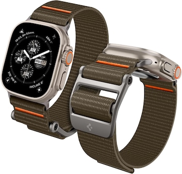 Spigen DuraPro Flex Ultra watch band for Apple Watch ULTRA 2 / Ultra 49mm, Apple Watch Series 9/8/SE2/7/6/SE/5/4/3/2/1 (45mm, 44mm, 42mm) brings timeless style to your Apple Watch Ultra. New and improved with a broader nylon band that’s lightweight, breathable, and rugged. Plus, its metal buckle secures the watch band for the perfect fit and feel on your wrist. Installation and removal is Hassle-free with the built in Apple Watch adapter. Take it everywhere - the gym, office, the outdoors. It's got you for when life happens.