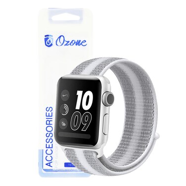 Ozone - Lightweight Breathable Nylon Sport Loop Replacement Strap for Apple Watch 40mm / 38 mm Series 4 / Series 3 / 2 / 1 - Striped white