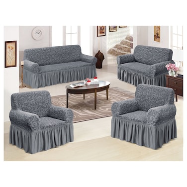 4-Piece Stretchable Sofa Cover Set Grey Jacquard Fabric Seven Seater 3211 Combination Couch Cover Set
