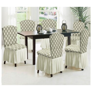 6-Piece Woven Jacquard Stretch Fit Dining Chair Covers Set Cream