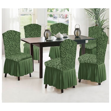 6-Piece Woven Jacquard Stretch Fit Dining Chair Covers Set Olive Green