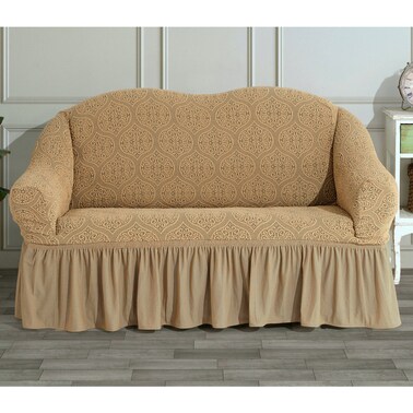 Fabienne Turkish Stretchable Jacquard Sofa Cover Two Seater Light Beige Free Size