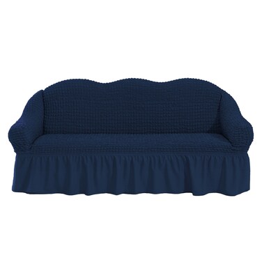 - <p> Three seater cover best fits up to 220 cm length sofa.<p> Made of high-quality stretchable fabric and good seam strength for durability<p> Wrinkle resistant and perfectly fits all types of sofas in the same size<p> Looks gorgeous on your sofa and gives a hint of style to your decor<p> Bubbled design provides perfect grip<p> Machine Washable, No color loss on washing<p> Useful to hide stains, wear n tear, and protects your sofa from children or pets.<p> Styrofoam rods included in package to support perfect fitting on the sofa.<p>Color : Dark Blue<p>Size : Free Size