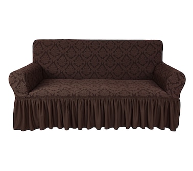 Jacquard Fabric Stretchable 3 Seater Sofa Cover Chocolate Brown