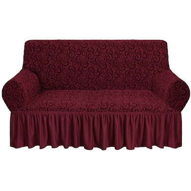 Jacquard Fabric Stretchable Two Seater Sofa Cover Maroon