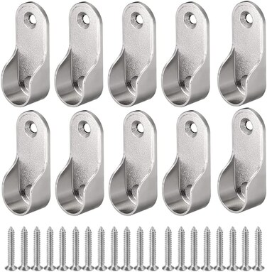 10 Pcs Zinc Alloy Oval Wardrobe Hanging Rail Rod Rail Hanger Standard Tube Support Wardrobe Rod Socket Fitting Round Bracket Stainless Steel Closet Rod Brackets