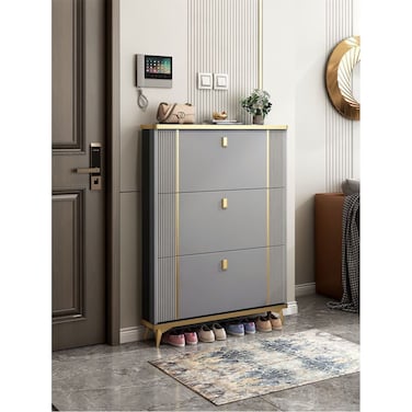 AWD Shoe Rack Cabinet in Double Tipping, Shoe Cabinet 3 Flipping Doors - Grayc