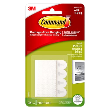 With 4 pairs per pack, you'll have more than enough strips to hang multiple items around your home or office. These picture hanging strips are easy to apply and remove, leaving no damage or residue behind. Say goodbye to nails and hooks with these convenient and reliable Command strips.