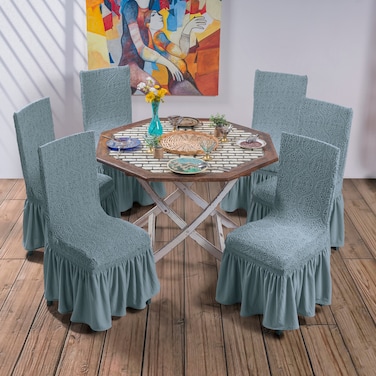 Fabienne 6-Piece Turkish Jacquard Dining Chair Covers Stretchable Grey Free Size