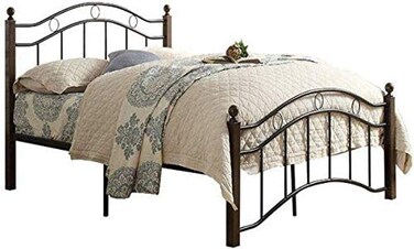 Generic Galaxy Design Queen Size (190X150 Cm) Steel Bed With Wooden Legs Mahogany [Without Mattress]