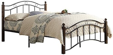 Generic Galaxy Design Steel And Wood Single Bed With Medical Mattress, Black With Mahogany Legs - 190(L) X 90(W) X 120(H) Cm