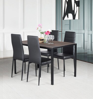 This dining set is perfect for small spaces or apartments, as it can comfortably seat four people without taking up too much room. The chairs are designed with comfort in mind, featuring padded seats and backrests for hours of comfortable dining.