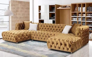American Vintage Design Chesterfield Velvet Button Tufted 7 Seat U shape Corner living room sofa,Designed with the traditional Chesterfield sofa in mind, this piece hits all the key elements, with deep button tufting, nail-head accents, scrolled arms, and turned legs.Featuring deep button tufting, our sofa offers both design and comfort. The tufting allows for breathing space while you relax, limiting the amount of heat that is generated.