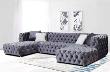 American Vintage Design Chesterfield Velvet Button Tufted 7 Seat U shape Corner living room sofa,Designed with the traditional Chesterfield sofa in mind, this piece hits all the key elements, with deep button tufting, nail-head accents, scrolled arms, and turned legs.Featuring deep button tufting, our sofa offers both design and comfort. The tufting allows for breathing space while you relax, limiting the amount of heat that is generated.