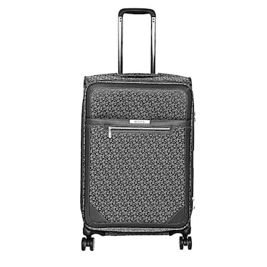 The DKNY Signature 4 Wheel Soft Casing Luggage Trolley in Black is a stylish and practical travel companion.