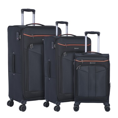Eminent Unisex Soft Travel Bag Trolley Luggage Set of 3 Polyester Lightweight Expandable 4 Double Spinner Wheeled Suitcase with 3 Digit TSA lock E788 Black