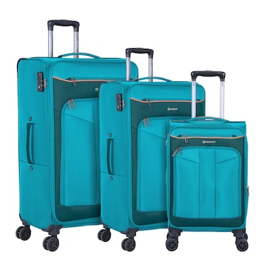 Eminent Unisex Soft Travel Bag Trolley Luggage Set of 3 Polyester Lightweight Expandable 4 Double Spinner Wheeled Suitcase with 3 Digit TSA lock E788 Green