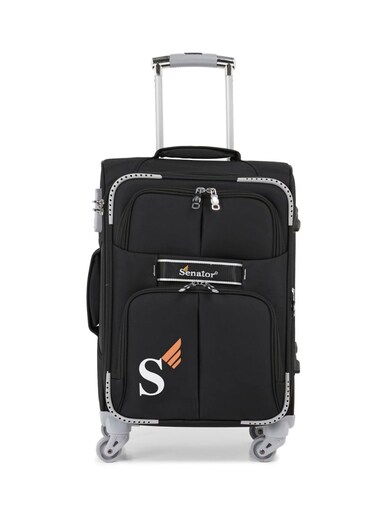 Senator Soft Shell Cabin Luggage Trolley For Unisex Ultra Lightweight Expandable Suitcase With 4 Wheels LL003 Black