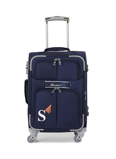 Senator Soft Shell Medium Checked Luggage Trolley For Unisex Ultra Lightweight Expandable Suitcase With 4 Wheels LL003 Navy Blue