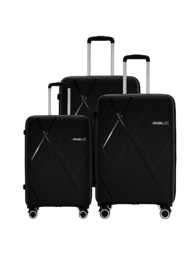 ParaJohn Luggage Sets 3 Piece With Trolley Set With Lightweight Polypropylene Shell 8 Spinner Wheels For Travel, Black