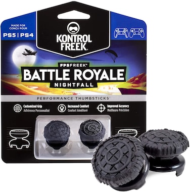 - <p>INCREASED ACCURACY - Adds 11.7 mm of added height to increase arc distance, resulting in more precise in-game movements and faster target acquisition<p>ENHANCES GRIP - Non-slip, proprietary rubber compound offers exceptional grip with laser-etched detailing<p>INCREASED COMFORT - Requires less force which reduces wrist, hand and thumb fatigue<p>TWO HIGH-RISE (CONVEX) THUMBSTICKS - Improves your shooting accuracy, particularly at mid-to-long ranges, and allows quick transitions between building, looting and farming<p>ERGONOMICALLY DESIGNED - to meet performance needs specific to the Battle Royale genre in games like Fortnite, Apex Legends, Blackout and Player Unkown Battlegrounds (PUBG) packaging may vary Packaging may not reflect updated compatibility<p>Product Description:<p>Many will enter, only one will emerge in the Battle Royale. Stay in the center of the action with our FPS Freek Battle Royale Nightfall Performance Thumbsticks. These domed, high-rise thumbsticks improve accuracy, comfort and control to keep you fighting and foraging in games like Fortnite, Call of Duty and Player Unknown Battlegrounds (PUBG) until the storm subsides. Designed to meet ergonomic and performance needs specific to the Battle Royale genre, FPS Freek Battle Royale Nightfall increases your controller stick height by 11.7mm and arc distance by 120%. This improves your shooting accuracy, particularly at mid-to-long ranges. The unique, black on black design creates intense grip to allow quick transitions between building, looting and farming. With FPS Freek Battle Royale, you’ll play better for longer, helping you become the last one standing.