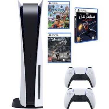 Sony Playstation 5 Console And Extra Controller Games Demon Souls, Marvel Spider Man Miles Morales, Sackboy A Big Adventure, UAE Version