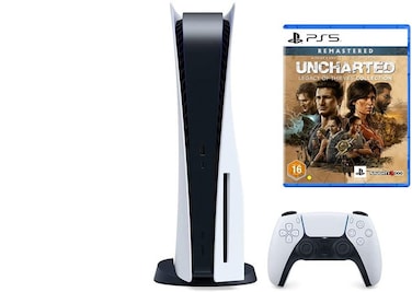 - <p> Sony PlayStation 5 Standard Edition Disc Console with Uncharted Legacy of Theives Col PS5 and Dualsense 5 White Controller<p> Experience lightning-fast loading with an ultra-high-speed SSD, deeper immersion with support for haptic feedback, adaptive triggers and 3D Audio, and an all-new generation of incredible PlayStation games<p> Breathtaking Immersion - discover a deeper gaming experience with support for haptic feedback, adaptive triggers, and 3D Audio technology<p> Harness the power of a custom CPU, GPU, and SSD with Integrated I/O that rewrite the rules of what a PlayStation console can do.<p> Marvel at incredible graphics and experience new PS5 features.