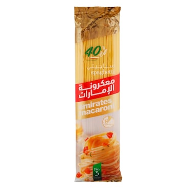 - Emirates Macaroni Spaghetti comes in a convenient 400g package