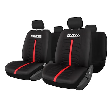 - Material: Polyester. SPARCO embroidery logo on front. 8 mm foam double laminated down the middle provides extra padded comfort and support. Sporty design in middle. Fast and easy installation with attached stretch cords and “S” hooks. Universal design to fit most car seats with and without side airbags. Anti-fading colouring process that keeps seat covers looking brand new. Breathable, durable & stylish design. Make your driving experience more comfortable, relaxing and enjoyable. Machine washable. Sparco Zipper Bag package. Package Dimension: 24 x 12 x 42 cm.