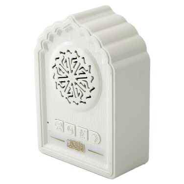 The Wall Mounted Quran Speaker is designed for easy placement on your wall, seamlessly becoming a part of your living space. Specifically crafted for wall mounting, this speaker offers an elegant and space-saving audio solution. It comes with a remote control for convenient adjustments and features FM radio functionality to expand your entertainment options. With 8GB of storage, this Equantu Portable speaker ensures you have ample space for your audio content. Charging the speaker is a breeze with its USB connectivity option, providing a hassle-free and easily accessible power source. The MP3 player’s distinctive small mosque-shaped design combines functionality with a unique aesthetic inspired by Islamic architecture.