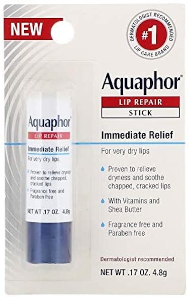 Description #1 Dermatologist Recommended Lip Care Brand For Very Dry Lips Proven to Relieve Dryness and Soothe Chapped, Cracked Lips With Vitamins and Shea Butter Fragrance Free and Paraben Free Dermatologist Recommended Aquaphor Lip Repair immediately relieves dryness and soothes chapped, cracked lips. It provides effective, long-lasting moisture, so lips look and feel healthier. Formulated with a special combination of nourishing vitamins (C,E provitamin B5), moisturizers, shea butter, and jojoba oil. Aquaphor lips feeling soft and comfortable.