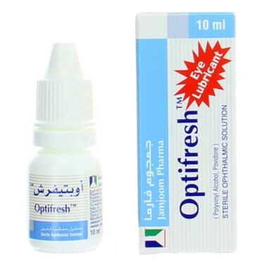 Optifresh Eye Drops is used for Disinfectant properties. Dry eyes, Thickening agent, Pleurodesis and other conditions. Optifresh Eye Drops contains Polyvinyl Alcohol and Povidone K 29/32 as active ingredients. Optifresh Eye Drops works by increasing the persistence of tear; binding and removing stains. Jamjoom Pharmaceutica Ls manufactures Optifresh Eye Drops.