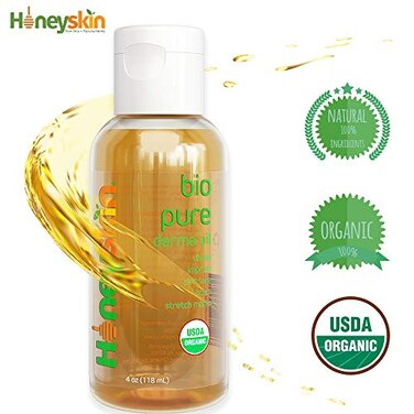Scar and Stretch Mark Skin Care Oil - for Acne, and Belly Scars - With Rosehip, Sweet Almond, Grape Seed Oil - With Vitamin E & Omega 3 - Dark Spot Facial Serum - Bio Pure Oil - USDA Organic (4oz)