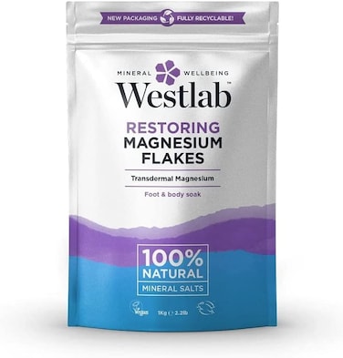 Westlab Restoring Magnesium Flakes With 100% Natural Mineral Salts, 1KgWith an exceptionally calming and relaxing effect, Westlab Magnesium Flakes help relax muscles and support a restful and peaceful night’s sleep. Excellent quality magnesium is used to help increase magnesium in the body. Modern diet and lifestyles can deplete the body of this essential mineral, which may leave you feeling tired, anxious, aching or restless. Magnesium is required for muscle and nerve function, energy production and bone development. It regulates the body’s use of calcium and other key minerals. How to use: Add salts to a warm bath (37-39°C is ideal). Relax and soak for at least 20 minutes. To help maintain general wellbeing, use around 100-250g (1/2-1 cup) 1-3 times per week, If you don't bathe as regularly, then you may prefer to have a more intense transdermal magnesium bath with 500g-1Kg (2-4 cups) once a week. You can use alongside other bath salts, oils and foams, so any bath can be boosted with Magnesium flakes. Key Precautions: Seek advice of a healthcare professional before use if you are pregnant or breastfeeding. Ingredients: Magnesium Chloride
