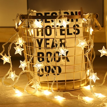 - Decorative Hanging star Lights: Warm white star shaped string lights are made of quality copper wire, led bead and PVC string, which is low power, high brightness, low fever, portable and waterproof for indoor and outdoor decoration.