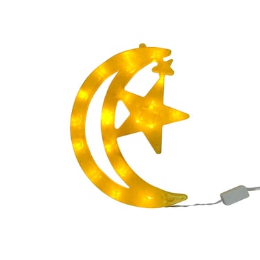 Crescent Moon Star Yellow Glowing LED Light 30x22cm