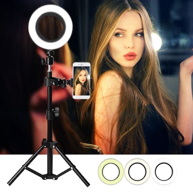 Generic-16cm Fill Light Ring Light Supplementary Light LED Light Folding Fill Light for Photography Live Stream Makeup YouTube Video with 160cm Tripod Stand 360°Tripod Head Bike Clip