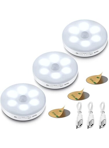 Generic 3 Pieces Sensor LED Night Light USB Charging Human Body Induction Night Lights, Anywhere Wall Light Step Light Stair Light For Bedroom, Cabinet, Kitchen, Entrance