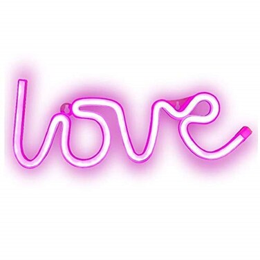 - Bring more fun to life with this eye-catching LOVE Neon Light.</br> Can replace the boring lamps, creating a charming atmosphere that adds colour to your room.</br></br> Material: High quality plastic + LED.</br></br> Light Source: LED.</br></br> Light Source Colour: Pink.</br></br> Switch Mode: On-off switch.</br></br> Power Source: Battery or USB.</br> It requires 3 x AA batteries (not included), and it comes with a USB cable (can easily connect to chargers and computers).</br></br> Integrated hanging hook holes for ease of display on wall or just rest on mantle, self, table or dresser.</br></br> Perfect decoration for home, bedroom, living room, balcony, office, children's room, restaurant, porch, Christmas, New Year, parties, birthday, weddings, etc.</br> </br> Perfect gift for Christmas, birthdays, Valentine’s Day, weddings, anniversary etc.</br> </br> Size (WxH): 35x13cm.</br> </br> Brand: Salla.</br> "