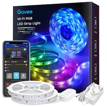 SpecificationsColor:RGBAverage Life:50000 HoursMaterial:FPC + LEDVoltage:12 VoltsPower and Plug Description:Corded ElectricPower Adapter:UK PlugGovee Wi-Fi RGB LED Strip LightsExplore An Intelligent WorldSMART VOICE CONTROLWorks with Alexa and Google Assistant.Use voice commands for power on/ off, colors, brightness, and modes. CONVENIENT APP CONTROL Manage your lighting from anywhere in the world.Find both simple controls and amazing customization with the free Govee Home App. MUSIC SYNC MODEUsing the highly-sensitive built-in mic, your lights can dance along to the beat of your songs (or even your own singing voice). AMBIENT BEDROOM RGBEasily place alexa LED Strip Lights under and behind your bed or around your walls for stunning and vivid bedroom visuals that also relax the mind.