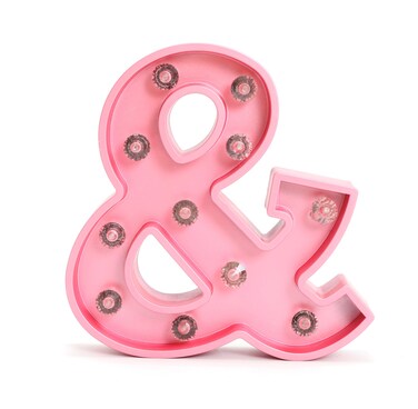 LED Marquee Ampersand Light Sign Wooden Pink (&) 25cm