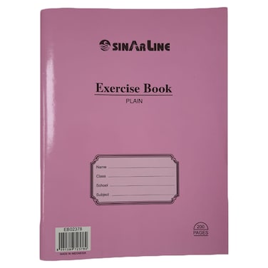The Sinarline Plain Exercise Book is a high-quality notebook with 100 sheets of pink paper.