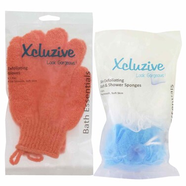 Xcluzive Exfoliating Gloves With Shower Sponges Multicolour 2 PCS
