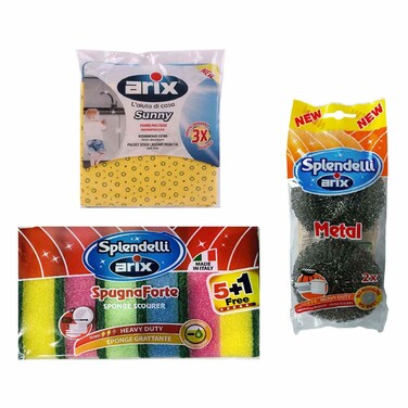 Arix Splendelli Sponge Scourer With Sunny Multipurpose Cloth And Metal Scourer Multicolour 11 PCS