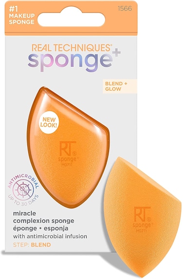 Style Name:Miracle Complexion Sponge Size:Single PackIt's a 3-in-1 multi-functional makeup sponge by Real Techniques. The rounded side blends larger areas of the face. The precision tip covers blemishes/imperfections and the flat edge contours around the eyes and the nose, leaving you with a complexion that's smooth, enhanced and gorgeous!