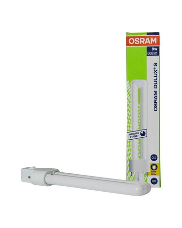 - The Osram Dulux 9 W/830 G23 are Fluorescent lamps with separate power supply comprised of two tubes. They are compatible with conventional and ferromagnetic ballasts. Each lamp of this range has a base type G23 with 2 metal pins. each light is 16.7 cm. With a color temperature of 3000K, Osram DULUX S 9W/830 G23 The color rendering index is excellent, more than 80Ra.