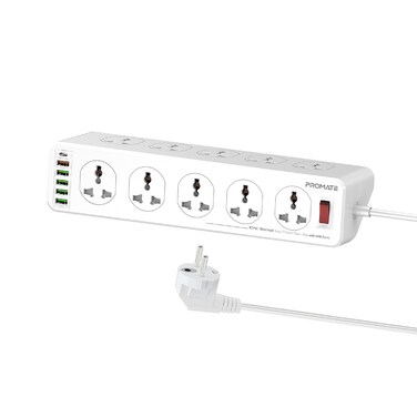 Promate Power Strip, Heavy-Duty Universal 10 Way Outlets Power Plug Extension with 20W USB-C Power Delivery Port, 18W QC 3.0 Port, 32W 4 USB Charging Ports and 3M Cord Length, PowerMatrix-3M EU Plug
