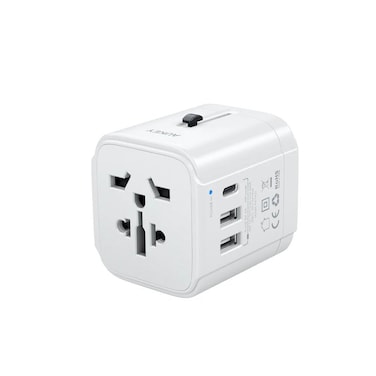 Aukey PA-TA01 Universal Travel Adapter With USB-C and 2xUSB-A Ports - White